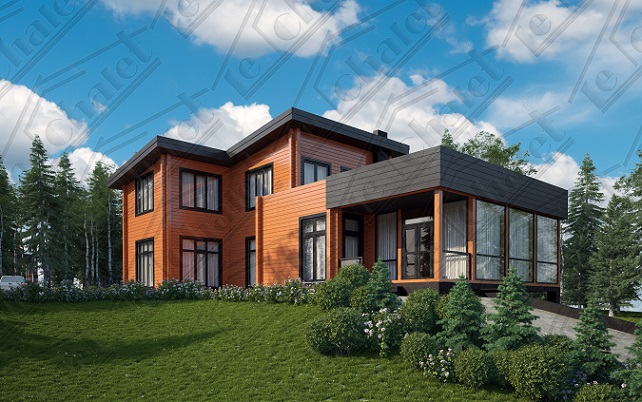 Заканчиваем проектирование нового дома, проект LeChalet 401 -407 кв.м. Клееный брус 190(h)х205, монолитный ж\б цокольный этаж. Вот так будет выглядеть.