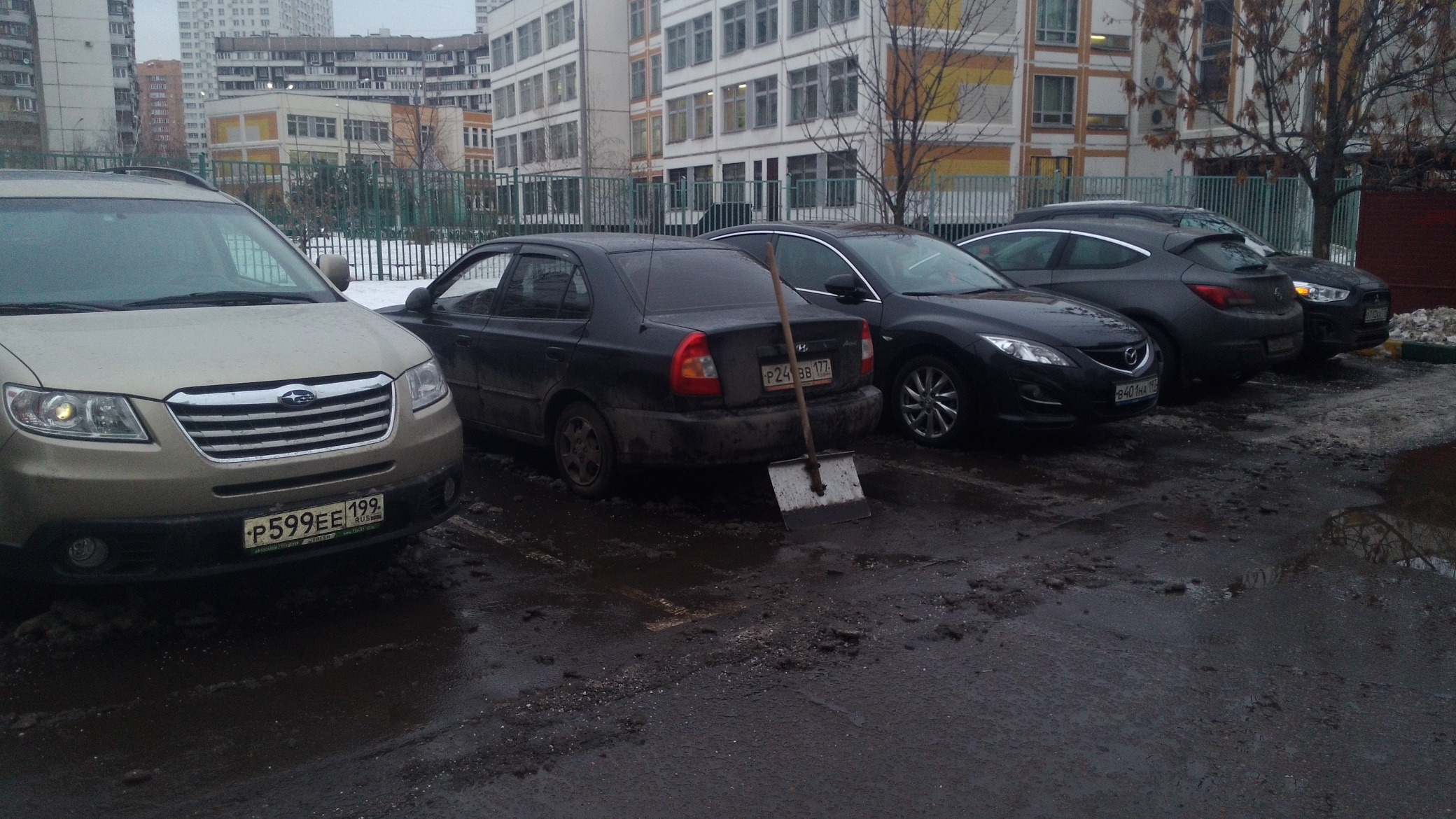 Скорее он в туалет отбежал, так как это ранний вечер (в школе, несмотря на то что фонари на улице горят, в большинстве классов света уже нет, значит занятия уже закончились) расположенной в спальном районе ( вокруг типичная застройка домов двадцатилетней давности эконом класса, трех-пятилетние машины, хозяева которых поехали на работу на общественном транспорте, оставив их у дома) Москвы, а не области (все номера московские)....