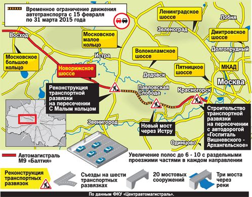 Такая масштабная и длительная реконструкция одной из важнейших западных российских магистралей может привести к полному параличу соседних трасс. Основную нагрузку примут на себя Волоколамское и Пятницкое шоссе – как основные альтернативные пути объезда «Новой Риги». Что касается населенных пунктов, то серьезные пробки можно будет ожидать в подмосковных Красногорске и Истре. Не исключено, что часть транспортного потока серьезно загрузит Минское и Можайское шоссе.