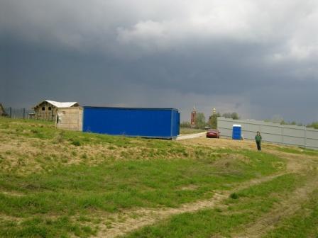 Всем привет ! Мы с женой приезжали 07.05.2012. Правда, погода подвела. Мы приехали около 13:00, и почти сразу началась жуткая гроза и ливень (см. фото ниже). Спускаться на угол к реке на машине не решился – подняться обратно в такую-то погоду могло быть проблематично. И к будке охранника метров 50 дороги не радует – почва очень мягкая, в дождь превращается в жижу. Кто поедет в дождь – будьте аккуратны (см. фото).