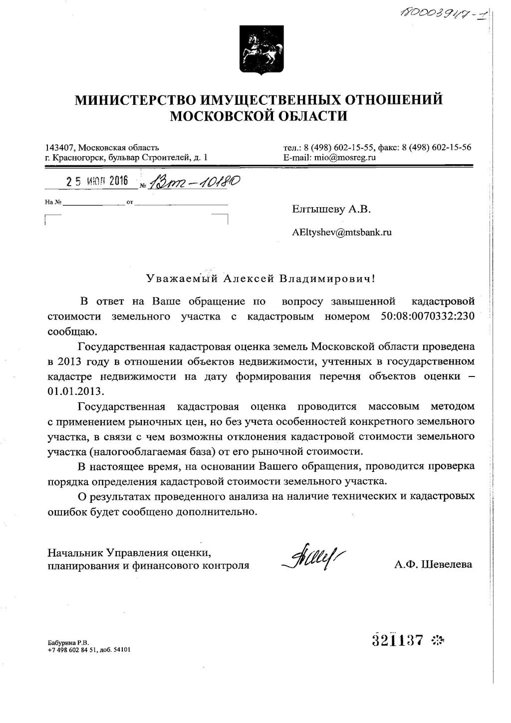 Писал я через сайт гос. услуг. Сначала в налоговую, которые меня отправили в Правительство Московской области, потом 2 раза туда (в т.ч. в Министерство имущественных отношений). Сначала мне ответили, что оценка осуществлялась массовым способом, поэтому возможны ошибки, написали, что есть возможность подать заявление в Министерство и оспорить оценку.