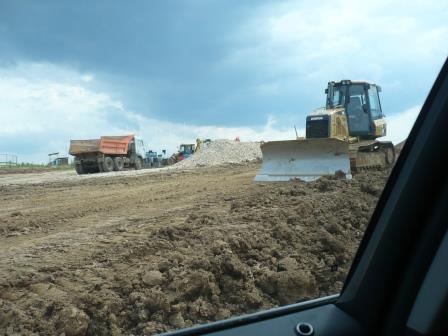 Были там с женой вчера. Пока я разбирался, как же мне фотки на форум выложить, нас уже опередили )) По поселку идет самая активная работа из всех, которые мы посмотрели. Пока мы участок рассматривали, недалеко рабочие делали решетку ливневки, мимо нас проехало три камаза с материалами. В ресорте на все участки выведена вода (торчит закрытый шланг), стоит деревянный крестик, на котором написано, что здесь "похоронена" канализация. Активно строится спортивный центр, начали делать дороги в Спорт вилладж.