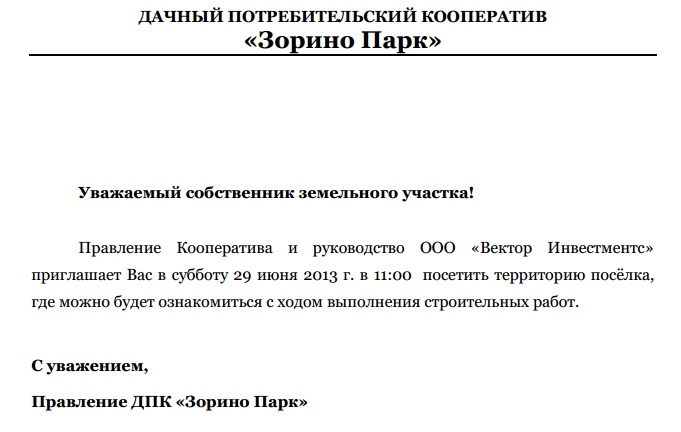 А чем вызвана уверенность в том, что завтра состоится собрание, что на нем будут представители Вектора и что они будут отвечать на вопросы? Из приглашения этого не следует. Нас просто приглашают посетить поселок и озакомиться с ходом работ. Что можо сделать в любой день.