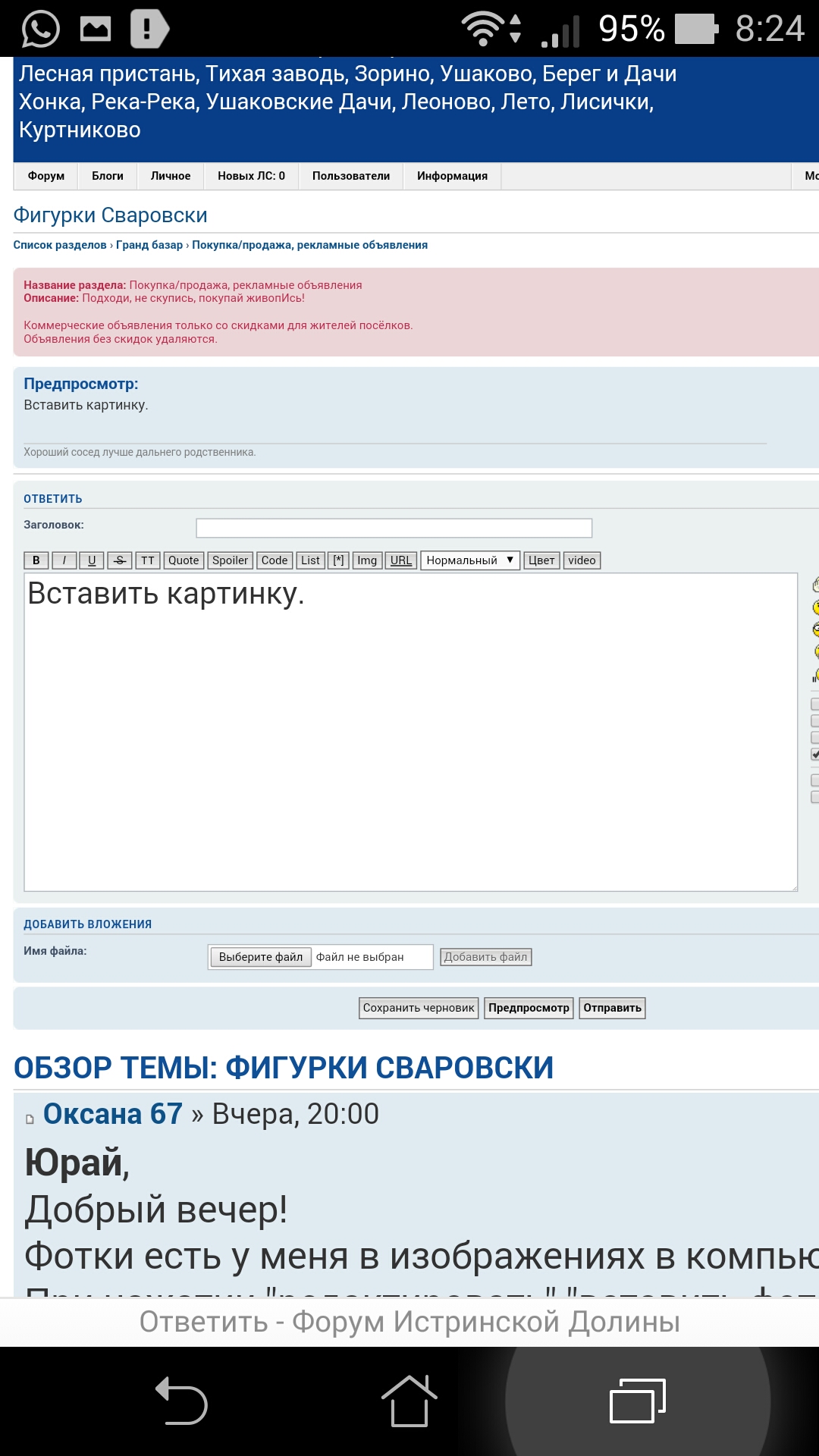 При нажатии "редактировать" "вставить фото" у меня не получается.
