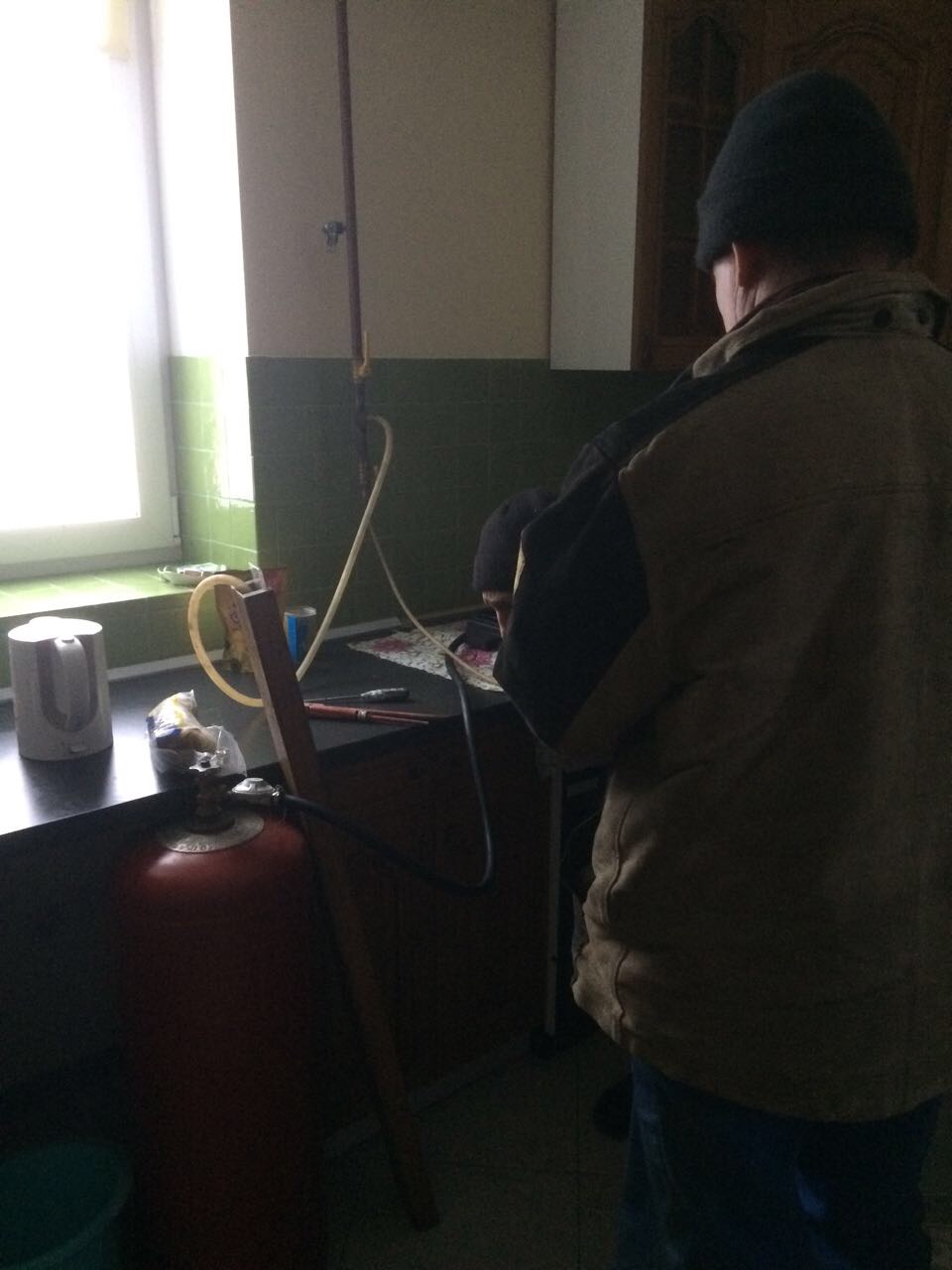 А теперь новости. Сегодня, 15.12.2017 службы УИР 701 произвели опрессовку ВДГО (внутридомового газового оборудования) (на фото) и системы газопровода от ДРП до ВДГО. Следующим этапом видимо будет сдача и подписания Акта службе РЭС, потом Акт об определении границ раздела собственности на газораспределительные сети, и так далее…