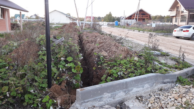 В районе участков 19-29 выкопали траншею под кабель. Фото делал 1.10.2016