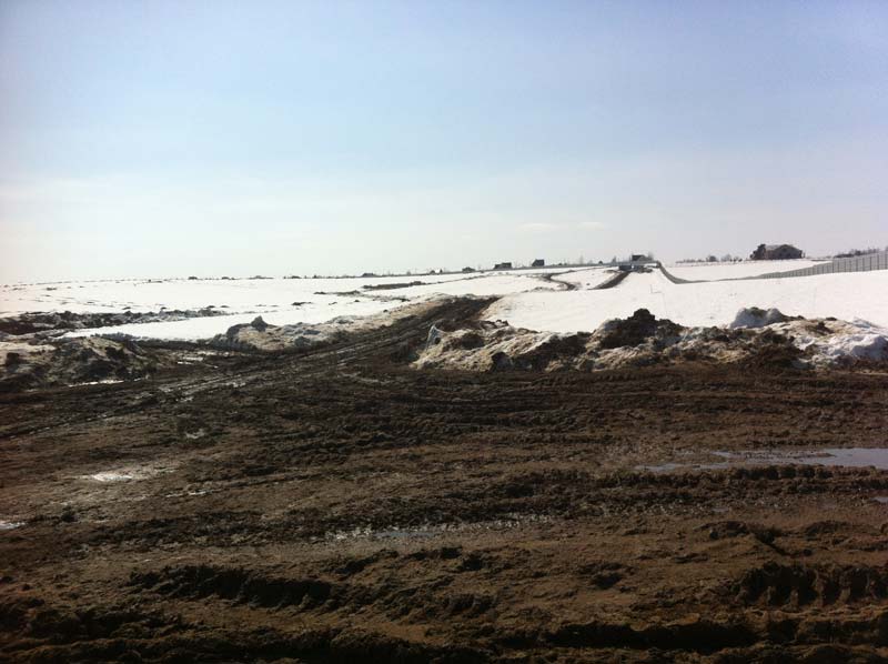 Самая верхняя часть канализации не доведена, локально местами свалены колодцы, люки с крышками, кмалые ольца, всё ляжет под снег.