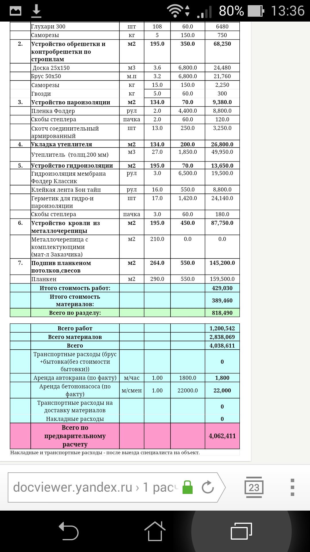 Дык в эту стоимость (4 млн) не входит еще сама металлочерепица (+200 тыс), транспортные расходы, накладные расходы (ох, как фирмы любят накладные расходы!!). Указана только цена за сборку крыши из металлочерепицы.