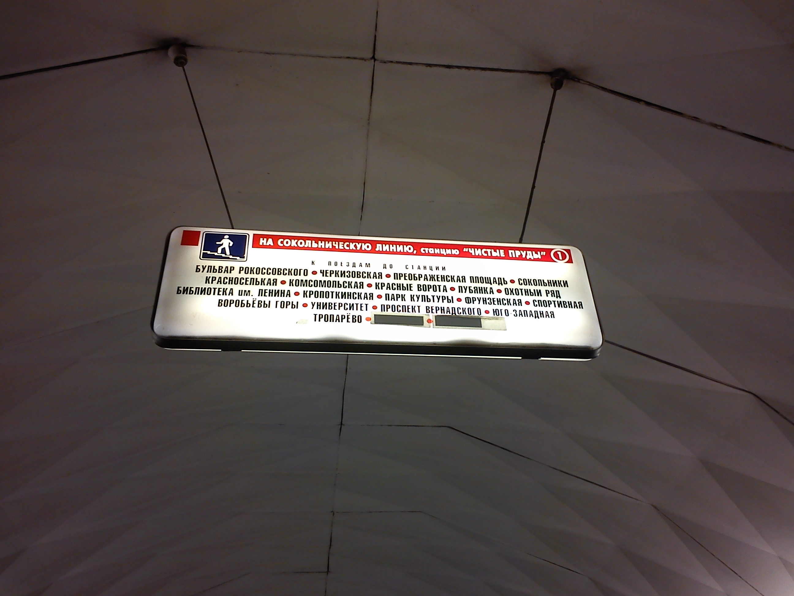 Сегодня, делая переход в метро, с Тургеневской на Чистые Пруды, краем глаза заметил какой-то дискомфорт в указателе перехода. Остановился, ещё раз посмотрел... Есть контакт, глаз не ошибся!